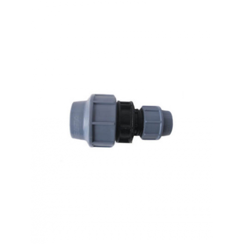 Муфта для труб 50Х25 используется в системе трубопровода из труб ПНД с рабочим давлением до 16 атмосфер. Благодаря использованию современных материалов муфта компрессионная для труб обладает высоким качеством, может использоваться многократно. Данный фитинг позволяет соединить  две полиэтиленовые трубы разного диаметра без применения специальных инструментов.
